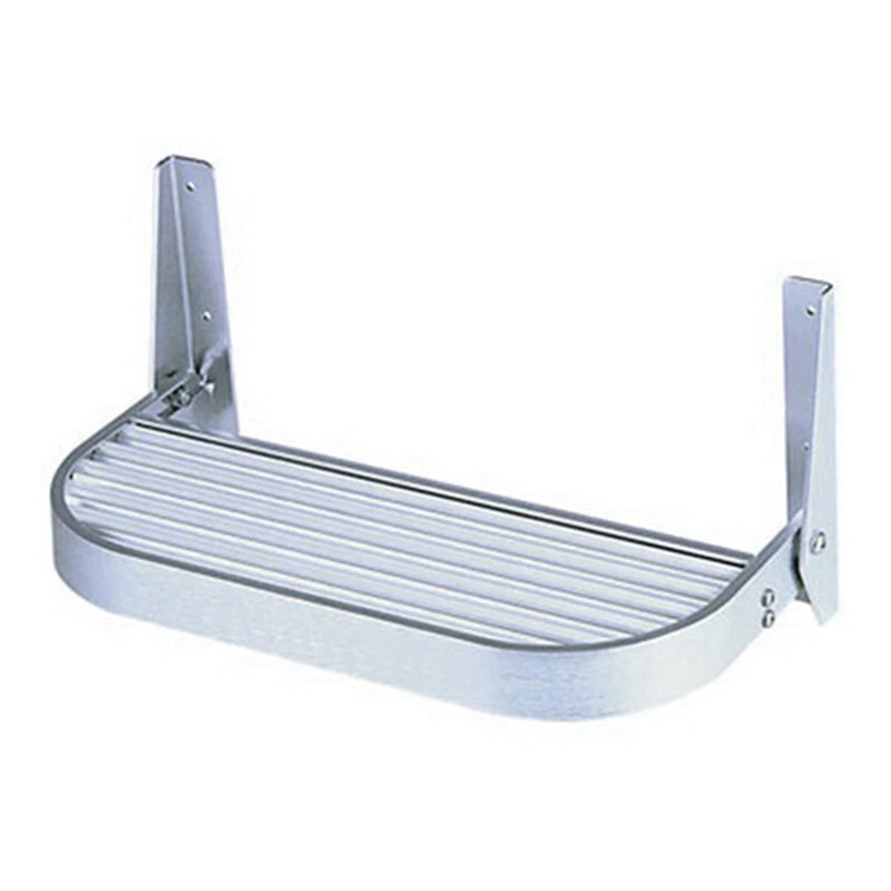 - Heavy duty wrap around aluminum extrusion with brushed anodized aluminum finish and white vinyl treads