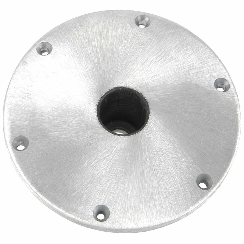 9″ round base, high strength aluminum with satin finish. 8″ mounting hole pattern. Below the deck mount requires a 4″ hole in deck. Use with any non-locking Spring-Lock™ post.