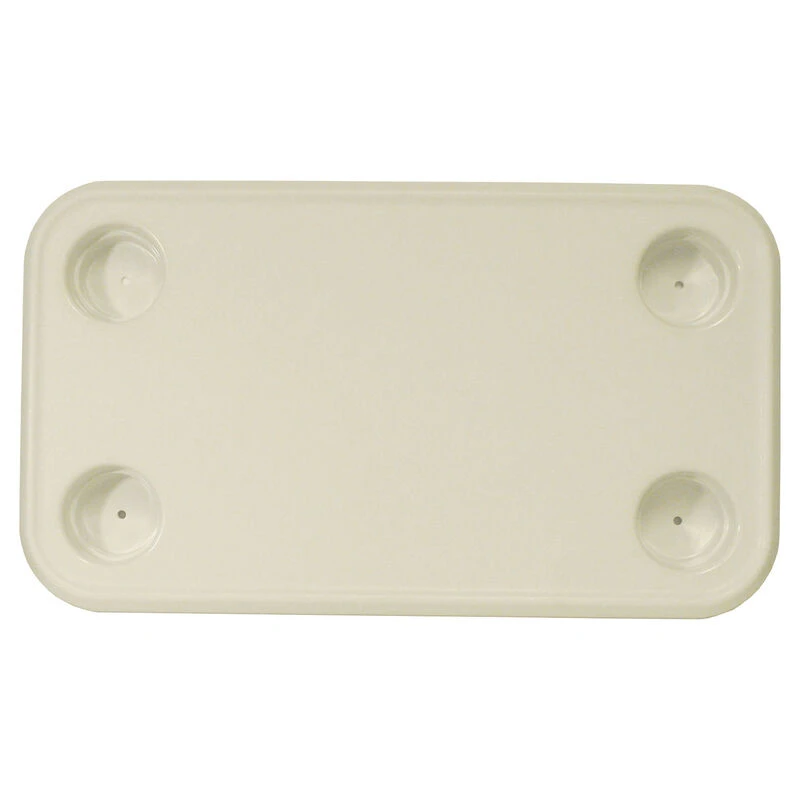 Rectangular table top, 28″ x 16″. Light-weight, molded heavy-duty marine grade plastic. 2 molded-in cup holders.