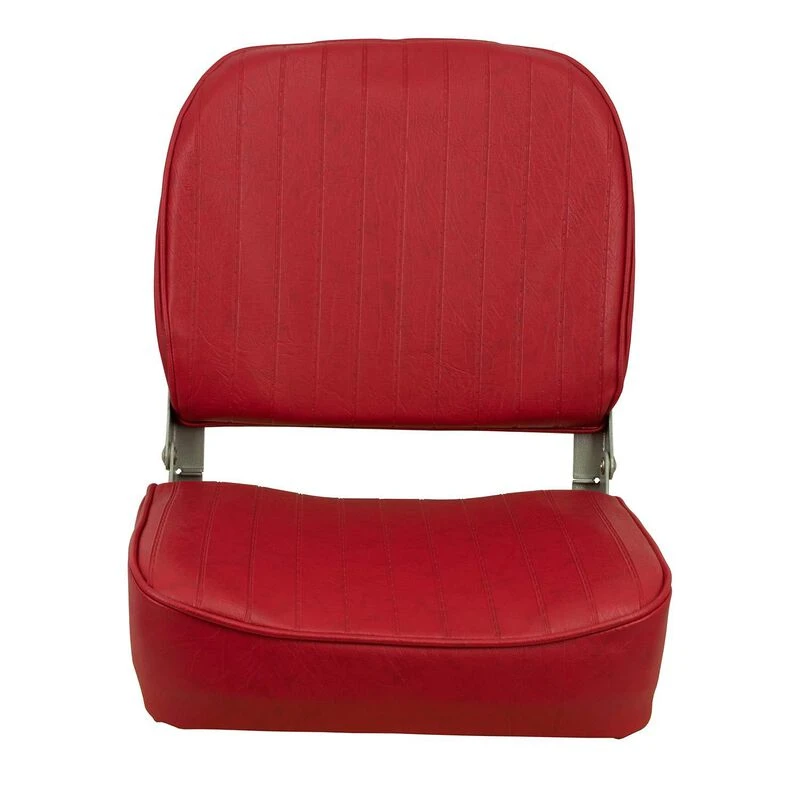 The Economy Folding seat provides a cushioned seat to support your backside. Durable strap with snap to keep seat secure when folded down. Rigid injection molded frame with heavy-duty powder coated hinges. Weather resistant marine grade vinyl.