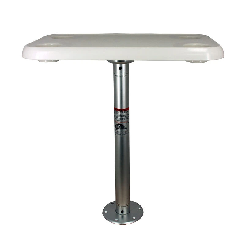 Rectangular table top: 28″ x 16″ diameter. 27″ aluminum Stowable post. Aluminum table mount. Aluminum locking base, Recess mount.